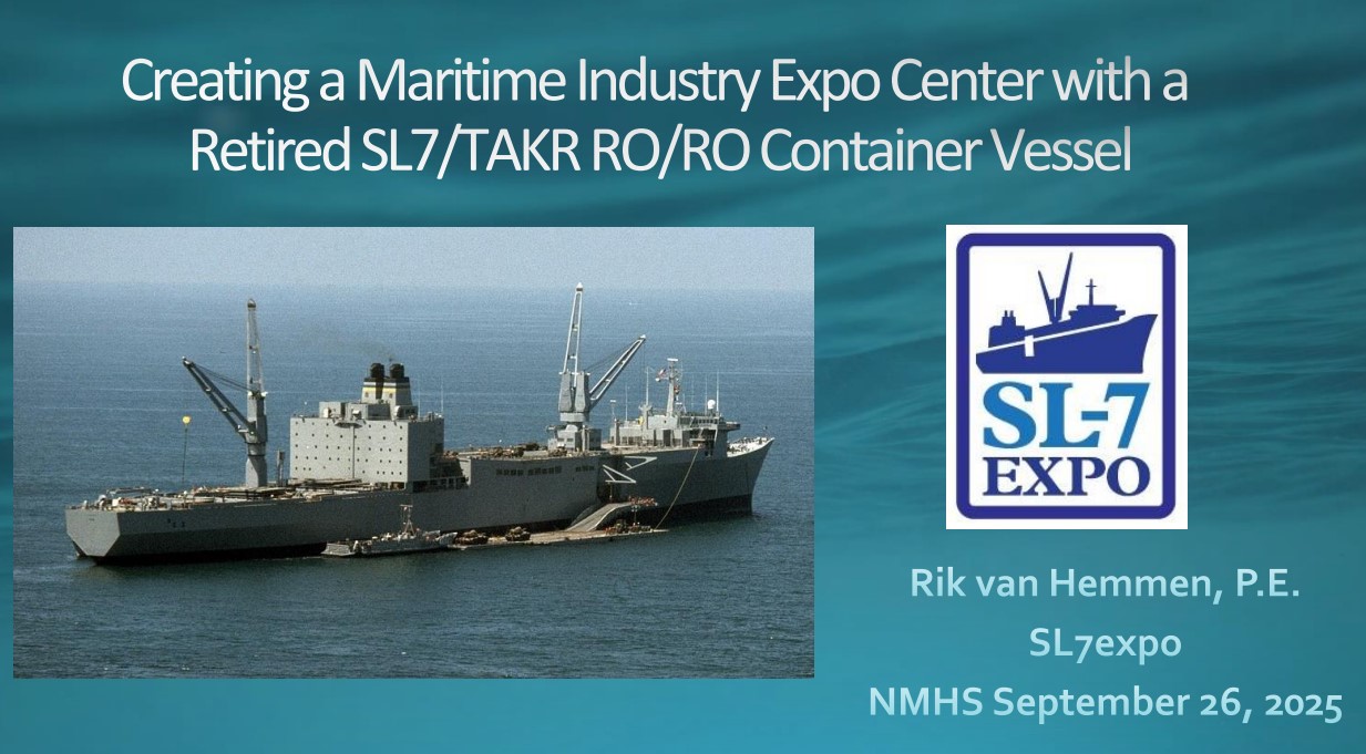 The use of the massive interior volume and large deck space of one or more of the groundbreaking SL-7 container ships will result in a world class Smithsonian level exposition center that will provide a national focus on the importance of maritime in the development and continued success of the nation.