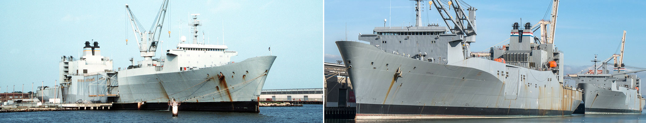 Originally built by containerization innovator Malcolm McLean as 33 knot container ships, the eight SL-7 class ships were converted into Fast Sealift Ships by the US Government in the early 1980’s. Their conversion into Roll on/Roll off vessels provided the US Government with a massive tactical sea lift capability that was vital in military operations such as Desert Shield and Desert Storm.